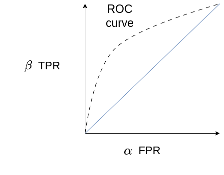 - \( \alpha \equiv FPR \equiv 1-specificity \equiv type \ 1 \ error\)